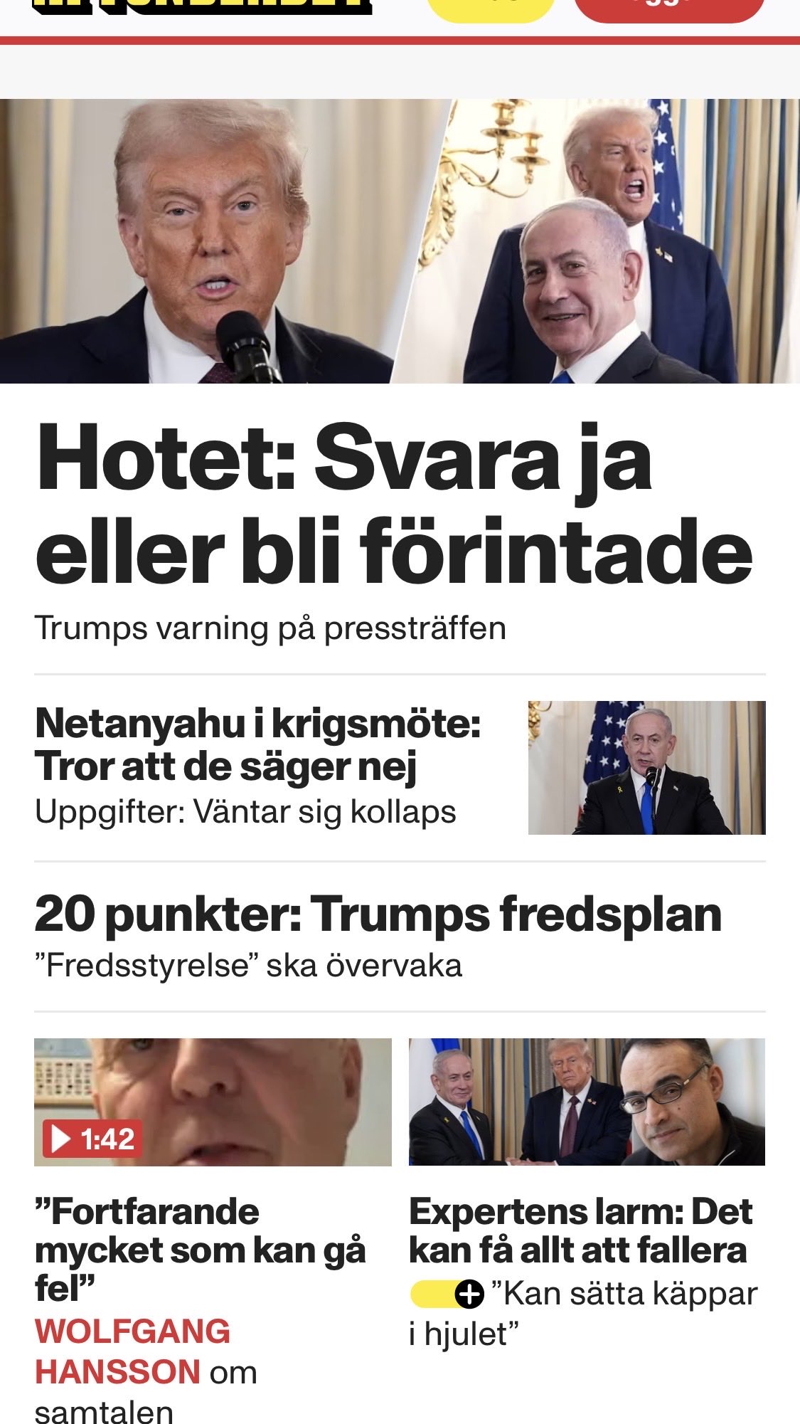 Hos SVT kommer den mest negativa rösten inifrån SVT självt, ”Trumps fredsplan kan bli en krigsplan” enligt kanalens Mellanösternkommentator Samir Abu Eid. Å andra sidan pågår det ett krig just nu, tänker måhända läsaren?