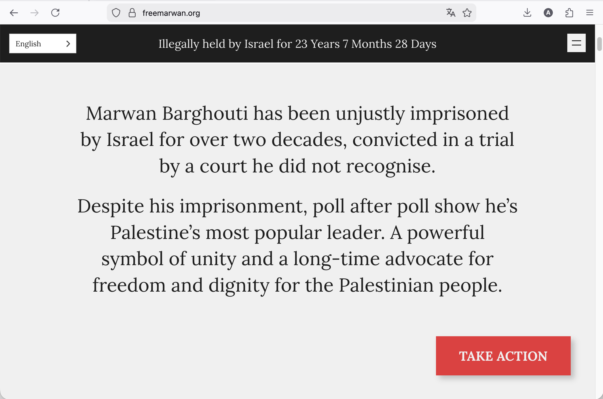 Despite his imprisonment, poll after poll show he’s Palestine’s most popular leader. A powerful symbol of unity and a long-time advocate for freedom and dignity for the Palestinian people.